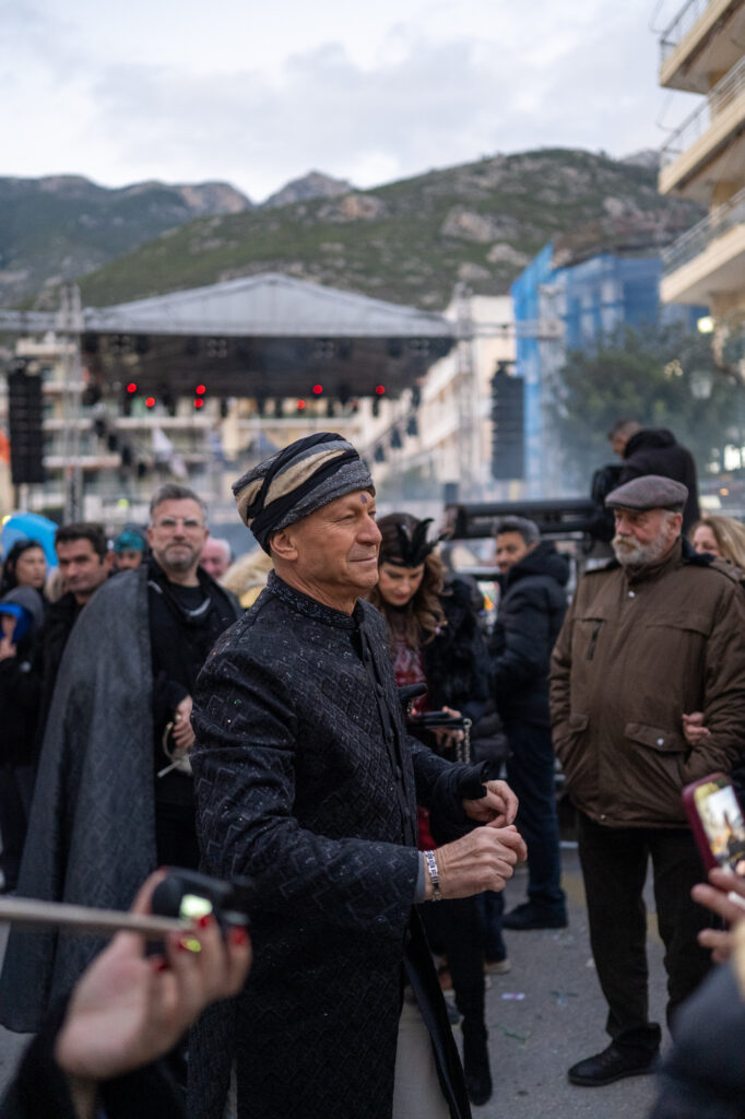 Ο δήμαρχος Νεμέας, Κώστας Φρούσιος, κράτησε πιο χαμηλούς τόνους, επιλέγοντας το ζεστό πέτσινο μπουφάν του, μια πιο διακριτική παρουσία, χωρίς υπερβολές.