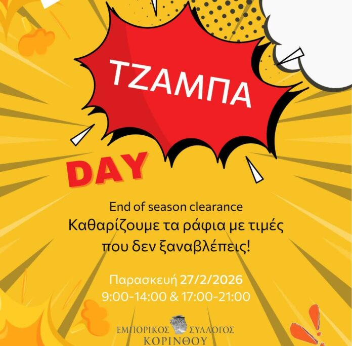 Tο Δ.Σ. του ΕΜΠΟΡΙΚΟΥ ΣΥΛΛΟΓΟΥ ΚΟΡΙΝΘΟΥ διοργανώνει — με αφορμή τη λήξη των εκπτώσεων και με στόχο την ενίσχυση της αγοραστικής κίνησης — τη λεγόμενη «ΤΖΑΜΠΑ Day» την Παρασκευή 27/2/2026.