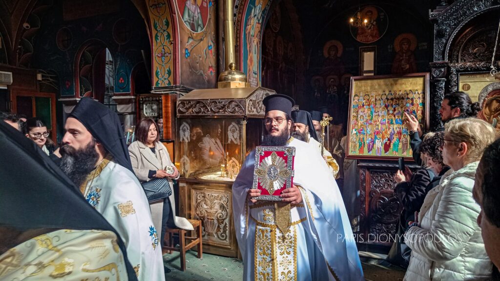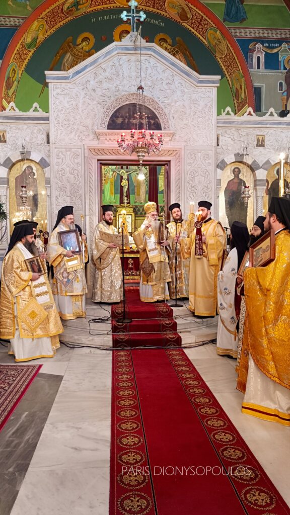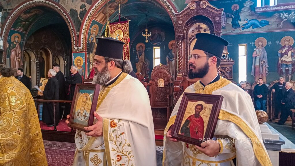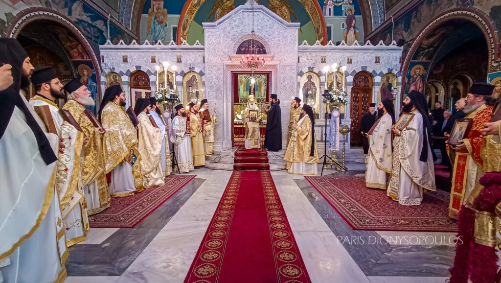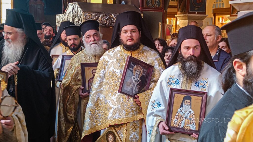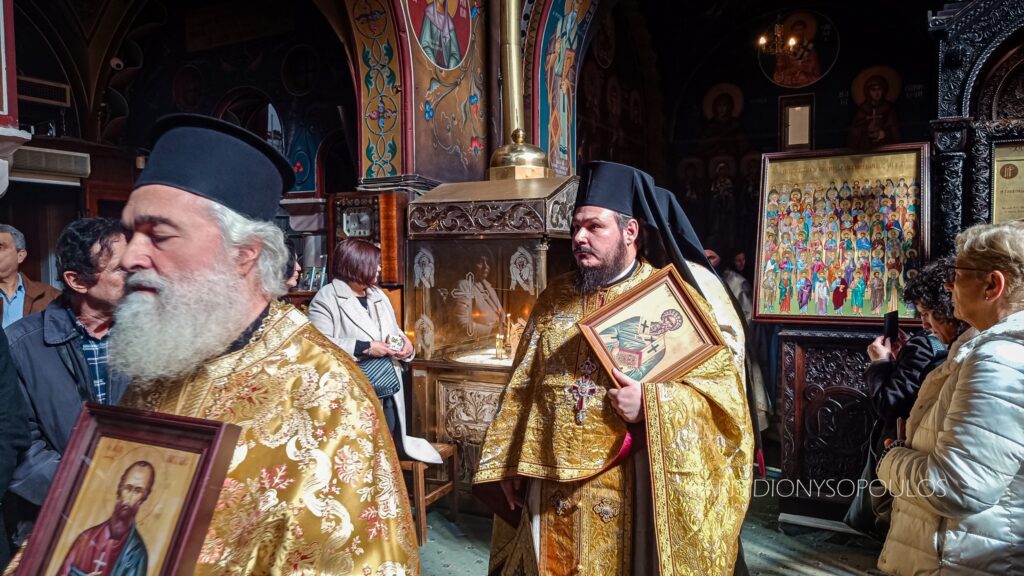 Με το πέρας της Θ. Λειτουργίας, πραγματοποιήθηκε εντός του Ι. Ναού η Ιερά Λιτάνευση των Αγίων Εικόνων. Προ της απολύσεως, προτάσει του Μητροπολίτου Κορίνθου κ. Παύλου, ο Θεοφ. Επίσκοπος Επιδαύρου κ. Νικόδημος χειροθέτησε εις Αρχιμανδρίτη τον νεοχειροτονηθέντα π. Νικόδημο.