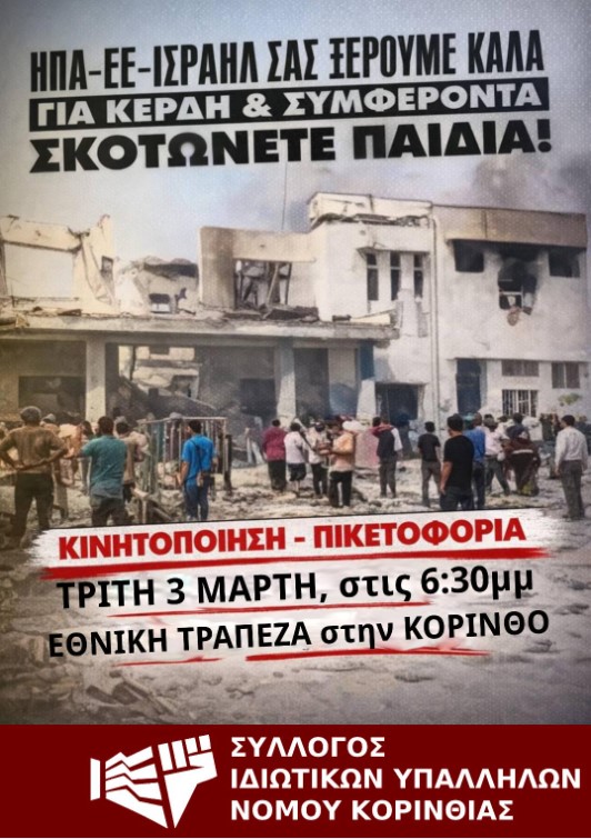 Υψώνουμε φωνή καταδίκης απέναντι στη νέα πολεμική κλιμάκωση στη Μέση Ανατολή! Καταδικάζουμε την εμπλοκή της χώρας μας στους ιμπεριαλιστικούς σχεδιασμούς!ΗΠΑ και Ισραήλ στο όνομα της ”δημοκρατίας” βομβαρδίζουν τον λαό του Ιράν με εκατοντάδες θύματα μέχρι στιγμής, ανάμεσα τους μικρά παιδιά! Η Ευρωπαϊκή Ένωση και η κυβέρνηση, με την ανοχή των κομμάτων του ΝΑΤΟ, υιοθετούν και αναπαράγουν τα γελοία προσχήματα των μακελάρηδων!