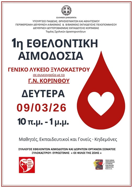 ΤΟΠΙΚΑΚορινθίαΥΓΕΙΑ 1η Εθελοντική Αιμοδοσία στο ΓΕΛ Ξυλοκάστρου 9 Μαρτίου 8 Μαρτίου 2026, 09:00 FacebookTwitterEmailCopy URLΤυπώνω - Advertisement - - Advertisement - ΕΤΙΚΕΤΕΣΕΘΕΛΟΝΤΙΚΗ ΑΙΜΟΔΟΣΙΑΔΗΜΟΣ ΞΥΛΟΚΑΣΤΡΟΥΚΟΡΙΝθΙΑΓΕΛ ΞΥΛΟΚΑΣΤΡΟΥ ΑΦΗΣΤΕ ΜΙΑ ΑΠΑΝΤΗΣΗ Ακύρωση απάντησης Σχόλιο: εισάγετε το σχόλιό σας! Όνομα: παρακαλώ εισάγετε το όνομά σας εδώ Email: έχετε εισάγει εσφαλμένη διεύθυνση ηλεκτρονικού ταχυδρομείου! παρακαλώ εισάγετε εδώ την ηλεκτρονική σας διεύθυνση Ιστοσελίδα: αποθηκεύστε το όνομα, το ηλεκτρονικό ταχυδρομείο και τον ιστότοπό μου σε αυτό το πρόγραμμα περιήγησης για την επόμενη φορά που θα σχολιάσω. Δ Δείτε ακόμα Λουτράκι Σήμερα το μεσημέρι η γιορτή του Συλλόγου Γυναικών ΑΓ.Θεοδώρων στο Castello Λουτράκι Στην δενδροφύτευση της Κορίνθου θα συμμετέχει η Κοινότητα Γαλατακίου Λουτράκι Μ.ΠΡΩΤΟΠΑΠΠΑ: 8 Μαρτίου: Ημέρα Αγώνα, Όχι Σιωπής ΤΟΠΙΚΑ ΞΥΛΟΚΑΣΤΡΟ: Η απενεργοποίηση σχολίων δεν «σβήνει» την κριτική Λουτράκι ΜΑΡΓΑΡΙΤΑ ΘΗΒΑΙΟΥ: Οι νέοι του τόπου μας αξίζουν περισσότερα από την αδράνεια. Σχετικά άρθρα Λουτράκι Σήμερα το μεσημέρι η γιορτή του Συλλόγου Γυναικών ΑΓ.Θεοδώρων στο Castello Λουτράκι Στην δενδροφύτευση της Κορίνθου θα συμμετέχει η Κοινότητα Γαλατακίου Λουτράκι Μ.ΠΡΩΤΟΠΑΠΠΑ: 8 Μαρτίου: Ημέρα Αγώνα, Όχι Σιωπής ΤΟΠΙΚΑ ΞΥΛΟΚΑΣΤΡΟ: Η απενεργοποίηση σχολίων δεν «σβήνει» την κριτική