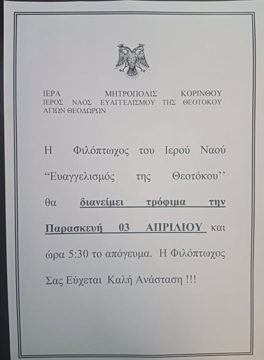 ΤΟΠΙΚΑΛουτράκι Διανομή τροφίμων από τον Ιερό Ναό «Ευαγγελισμός της Θεοτόκου» την Παρασκευή 3 Απριλίου! στις 17:30 το απόγευμα 21 Μαρτίου 2026, 18:00 FacebookTwitterEmailCopy URLΤυπώνω - Advertisement - - Advertisement - ΕΤΙΚΕΤΕΣΑΓΙΟΙ ΘΕΟΔΩΡΟΙΚΟΡΙΝΘΙΑΕΥΑΓΓΕΛΙΣΜΟΣ ΤΗΣ ΘΕΟΤΟΚΟΥΔΙΑΝΟΜΗ ΤΡΟΦΙΜΩΝδημος λουτρακιου ΑΦΗΣΤΕ ΜΙΑ ΑΠΑΝΤΗΣΗ Ακύρωση απάντησης Σχόλιο: εισάγετε το σχόλιό σας! Όνομα: παρακαλώ εισάγετε το όνομά σας εδώ Email: έχετε εισάγει εσφαλμένη διεύθυνση ηλεκτρονικού ταχυδρομείου! παρακαλώ εισάγετε εδώ την ηλεκτρονική σας διεύθυνση Ιστοσελίδα: αποθηκεύστε το όνομα, το ηλεκτρονικό ταχυδρομείο και τον ιστότοπό μου σε αυτό το πρόγραμμα περιήγησης για την επόμενη φορά που θα σχολιάσω. Δ Δείτε ακόμα Λουτράκι Αναστάτωση στους Αγίους για το ΚΑΠΗ. Τι καταγγέλει η γυναίκα που φέρεται να έπεσε θύμα χειροδικίας (ΒΙΝΤΕΟ) Κορινθία Eπετειακή εκδήλωση:”Η ΕΛΛΑΣ ΕΥΓΝΩΜΟΝΟΥΣΑ 2026″ Σοφικό! Κυριότερες Τοπικές ειδήσεις Tέλος καλό για τον ηλικιωμένο που εξαφανίστηκε στα Αθίκια Κορινθίας Κυριότερες Τοπικές ειδήσεις Συναγερμός στις Αρχές. Aγνοείται άνδρας στα Αθίκια Κορινθίας Δημοτικά Συμβούλια Δήμος Βέλου Βόχας: Συνεδριάζει το δημοτικό συμβούλιο την Πέμπτη 26 Μαρτίου Σχετικά άρθρα Λουτράκι Αναστάτωση στους Αγίους για το ΚΑΠΗ. Τι καταγγέλει η γυναίκα που φέρεται να έπεσε θύμα χειροδικίας (ΒΙΝΤΕΟ) Κορινθία Eπετειακή εκδήλωση:”Η ΕΛΛΑΣ ΕΥΓΝΩΜΟΝΟΥΣΑ 2026″ Σοφικό! Κυριότερες Τοπικές ειδήσεις Tέλος καλό για τον ηλικιωμένο που εξαφανίστηκε στα Αθίκια Κορινθίας Κυριότερες Τοπικές ειδήσεις Συναγερμός στις Αρχές. Aγνοείται άνδρας στα Αθίκια Κορινθίας
