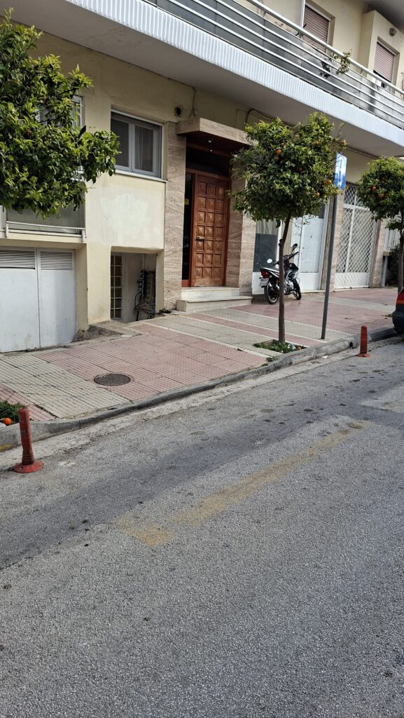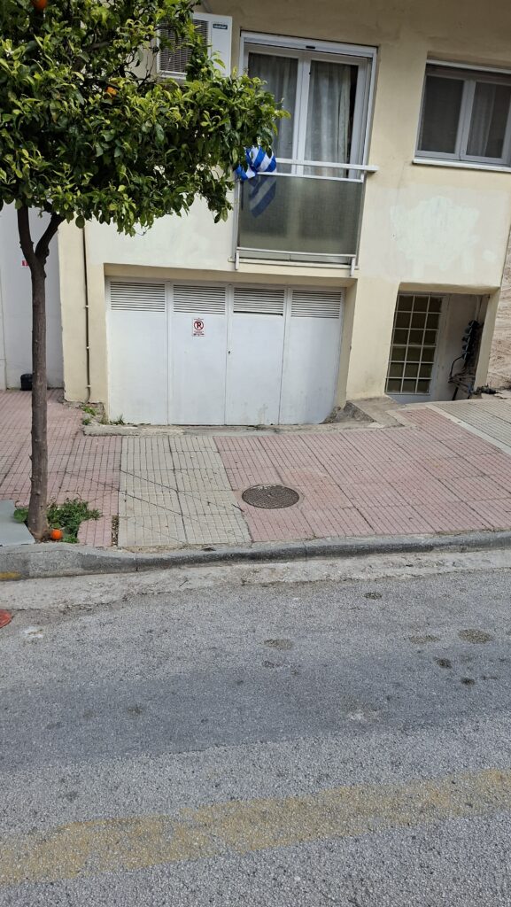 Αλλά η δημιουργικότητα στη γειτονιά δεν σταματά εκεί. Λίγα μέτρα πιο κάτω, ένας συμπολίτης μας αποφάσισε να ιδιωτικοποιήσει τον δημόσιο δρόμο. Με “όπλα” μια ταμπέλα που παραπέμπει σε θέση αναπήρων και δύο παράνομα κολωνάκια μπροστά από ένα ανύπαρκτο γκαράζ, δέσμευσε μιάμιση θέση πάρκινγκ για προσωπική του χρήση.