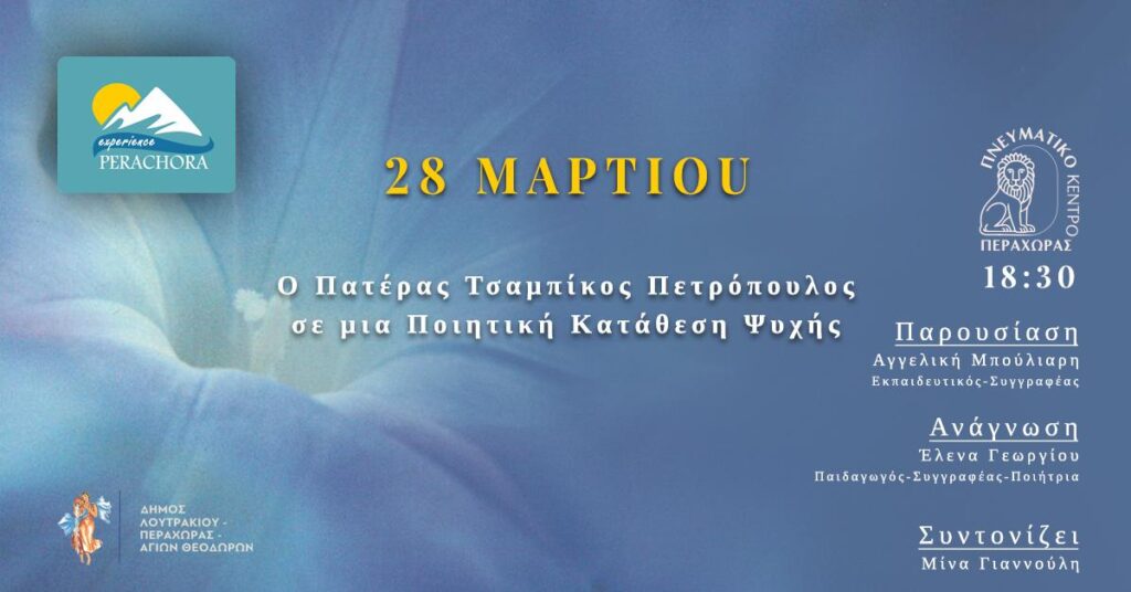 Η ομάδα του Experience Perachora σας προσκαλεί το Σάββατο 28 Μαρτίου 2026, στις 18:30,