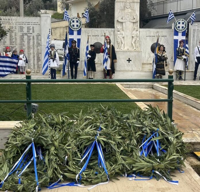 Το πρόγραμμα των εκδηλώσεων συνεχίστηκε με επιμνημόσυνη δέηση και κατάθεση στεφάνων στο Μνημείο των Πεσόντων, αποδίδοντας τον πρέποντα φόρο τιμής στους ήρωες του ’21.