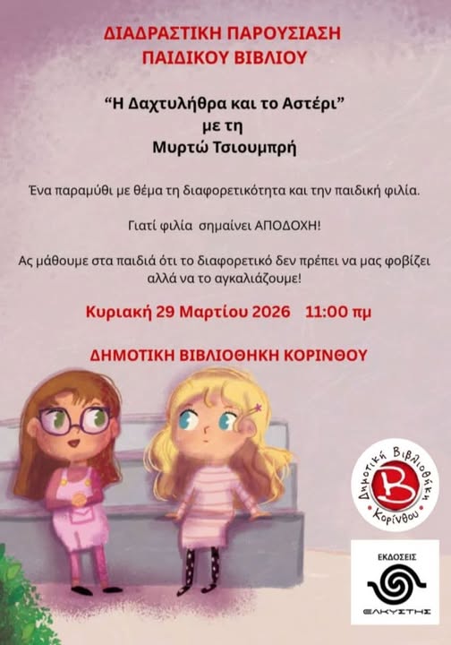 Η Διεύθυνση Πολιτισμού του Δήμου Κορινθίων σε συνεργασία με τις Εκδόσεις “ΕΛΚΥΣΤΗΣ” σας προσκαλούν σε μια ξεχωριστή δράση για μικρούς και μεγάλους!
