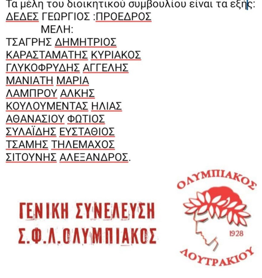 Η νέα διοίκηση αγαπητοί φίλες και φίλοι θα πρέπει να βοηθηθεί από όλους γιατί όπως και να το κάνουμε το ποδόσφαιρο ακόμα και στο επίπεδο που βρίσκεται ο Ολυμπιακός (Α’κατηγορία ΕΠΣ Κορινθίας) έχει έξοδα και χρειάζεται την συνδρομή όλων!