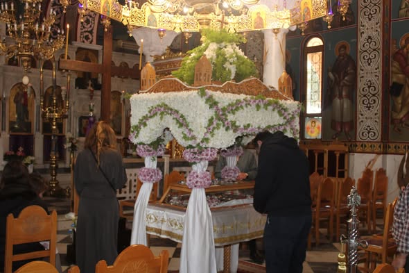 Ο Επιτάφιος στον Ιερό Ναό της Ευαγγελίστριας στους Αγίους Θεοδώρους αποτελεί μία από τις πιο κατανυκτικές στιγμές της Μεγάλης Εβδομάδας. Πιστοί κάθε ηλικίας συγκεντρώνονται με σεβασμό και συγκίνηση, για να τιμήσουν την Ταφή του Χριστού και να συμμετάσχουν σε μια βαθιά πνευματική εμπειρία.