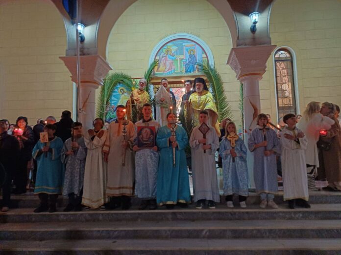 Από νωρίς, πλήθος πιστών κατέκλυσε τον περιβάλλοντα χώρο του ναού αλλά και τις παρυφές του δρόμου, κρατώντας αναμμένες λαμπάδες και συμμετέχοντας με κατάνυξη στο χαρμόσυνο μήνυμα της ημέρας.