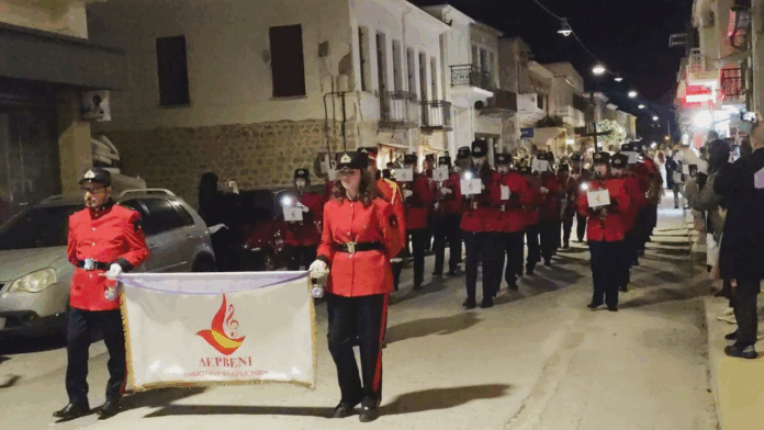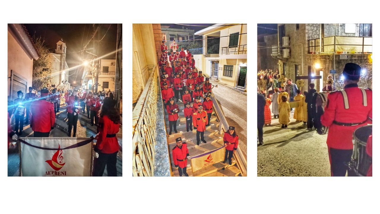 Η Δημοτική Φιλαρμονική Δερβενίου συνόδευσε τη περιφορά του Επιταφίου με τους πένθιμους ήχους του «Αι γενεαί αι πάσαι» και του πένθιμου εμβατηρίου “Επιτάφιος” , σε σύνθεση του αρχιμουσικού του Παναγιώτη Παναγάκου.