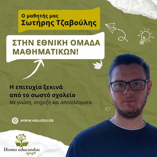 Ο μαθητής της Γ’ Λυκείου του σχολείου μας, 𝝨𝞈𝞃ή𝞀𝝶ς 𝝩𝝵𝝰𝝱𝝾ύ𝝺𝝶ς, επιλέχθηκε ανάμεσα στους 6 κορυφαίους μαθητές της Ελλάδας και θα εκπροσωπήσει τη χώρα μας στη 𝟒𝟑𝛈 𝚩𝛂𝛌𝛋𝛂𝛎𝛊𝛋ή 𝚳𝛂𝛉𝛈𝛍𝛂𝛕𝛊𝛋ή 𝚶𝛌𝛖𝛍𝛑𝛊ά𝛅𝛂 𝟐𝟎𝟐𝟔, που θα διεξαχθεί στη Θεσσαλονίκη (3–8 Μαΐου).