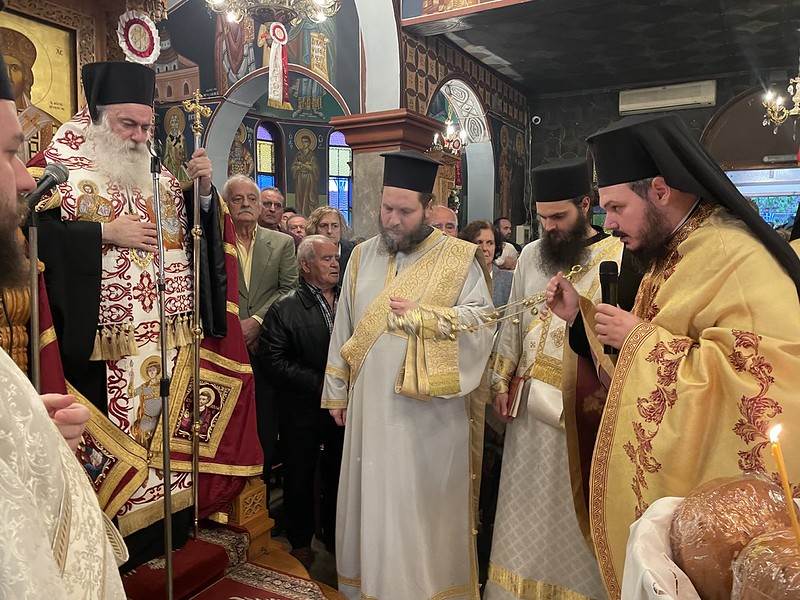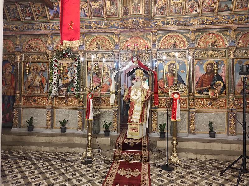 Ανήμερα της εορτής, ο σεπτός Ποιμενάρχης της Κορινθίας τέλεσε τον Όρθρο και τη Θ. Λειτουργία στον πανηγυρίζοντα Ενοριακό Ι. Ναό Αγίου Γεωργίου Ζαχόλης.