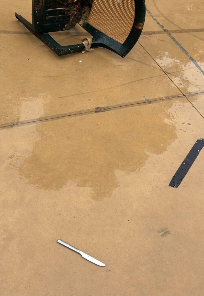 Χώρος σε εικόνα εγκατάλειψης, με σκουπίδια και επικίνδυνα αντικείμενα.