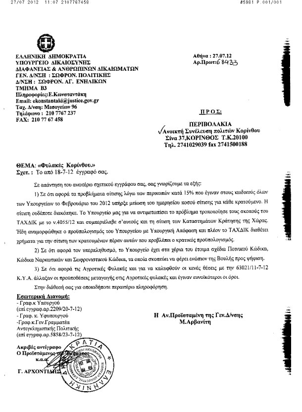 Το Υπουργείο Δικαιοσύνης, Διαφάνειας και Ανθρωπίνων Δικαιωμάτων απάντησε στην επιστολή μας, αλλά αυτό δεν μας εφησυχάζει. Αρνούμαστε να δεχτούμε ότι οι φυλακές είναι αποθήκες ανθρώπων δεύτερης κατηγορίας! Έχουμε χρέος να συνεχίσουμε την υλική και κοινωνική αλληλεγγύη μας, πιέζοντας παράλληλα και